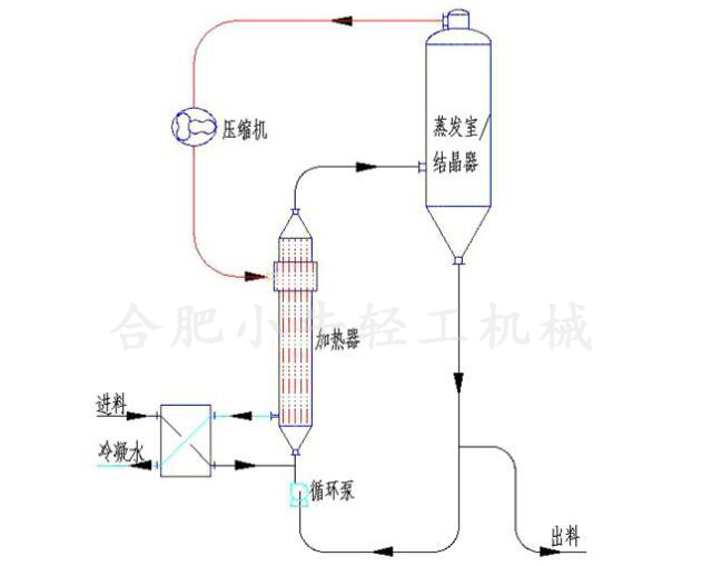 MVR強制循環(huán)蒸發(fā)結晶器工作原理: